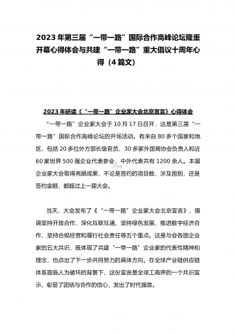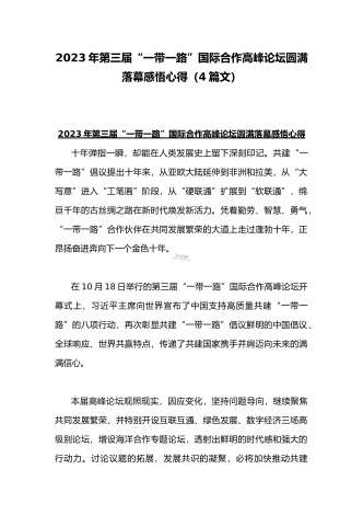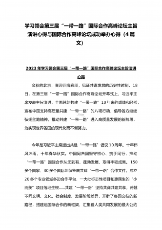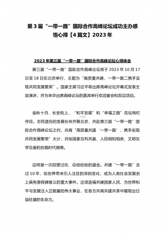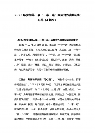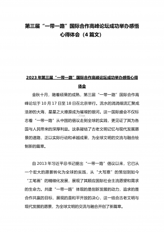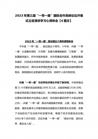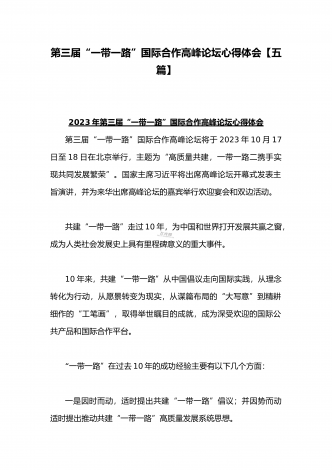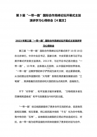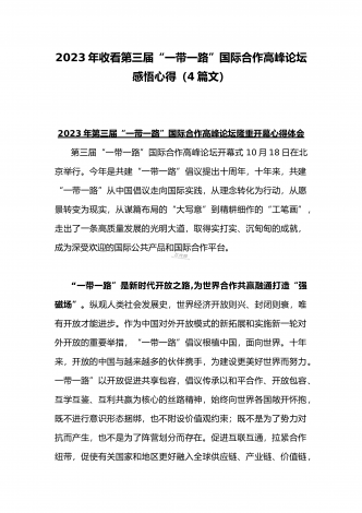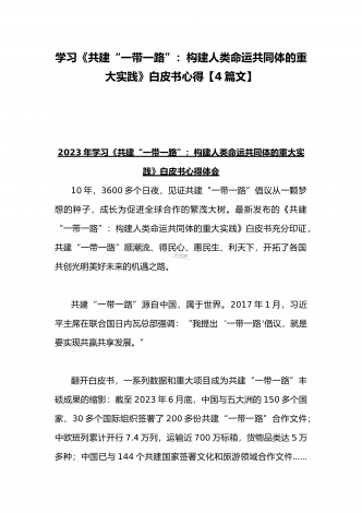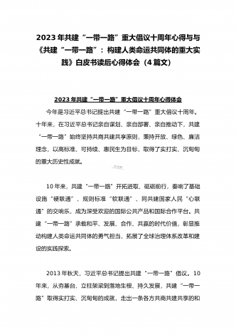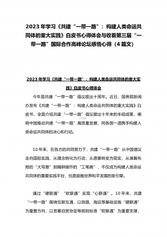 2023年学习《共建“一带一路”:构建人类命运共同体的重大实践》白皮书心得体会与收看第三届“一带一路”国际合作高峰论坛感悟心得(4篇文)
