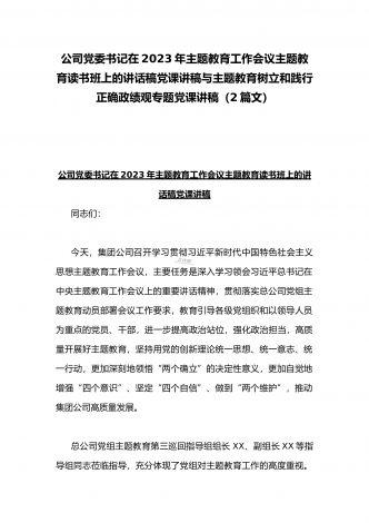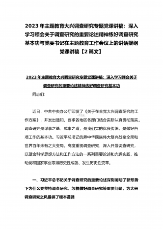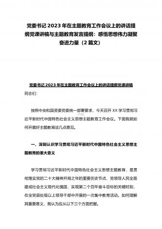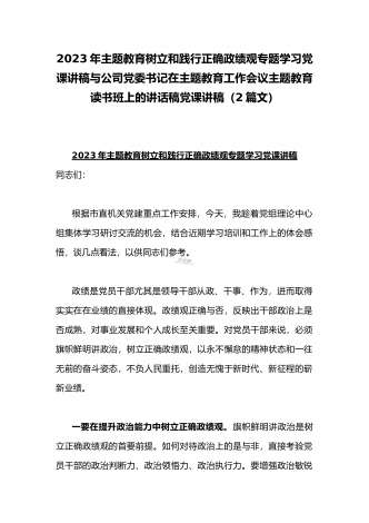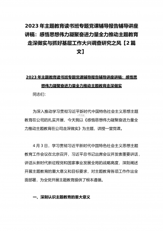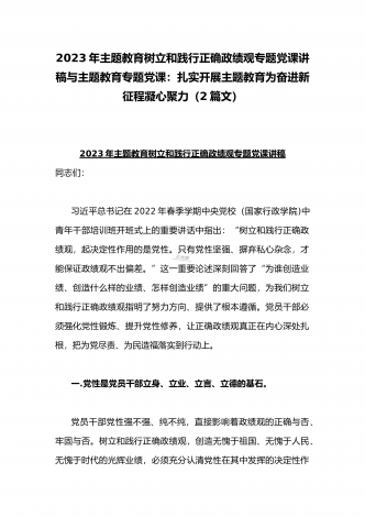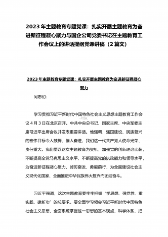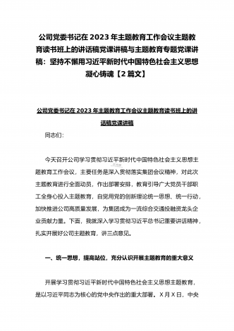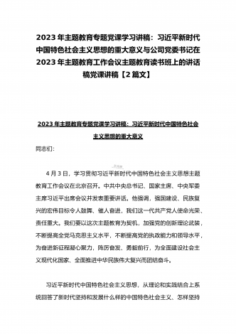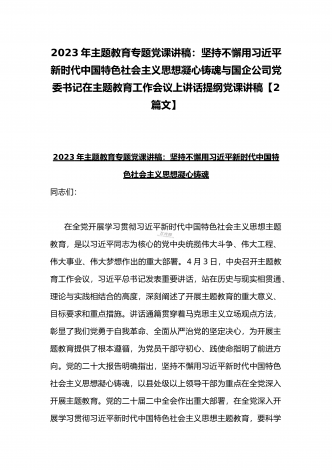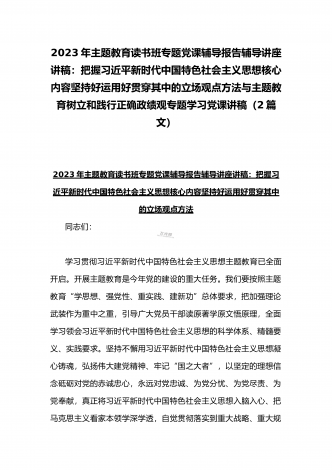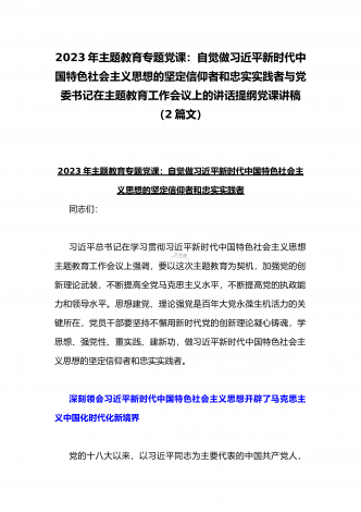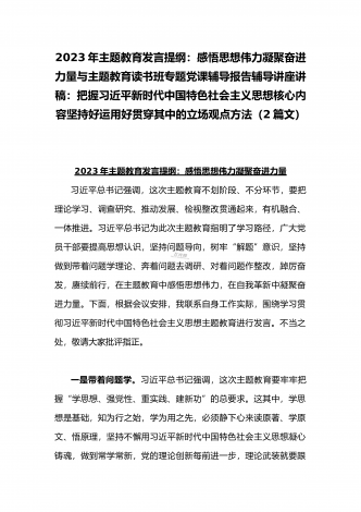 2023年“学思想、强党性、重实践、建新功”主题教育党课讲稿:深学笃用知行合一把主题教育成果转化为推动工作的强大动力与主题教育专题党课学习讲稿:习近平新时代中国特色社会主义思想的重大意义【2篇文】