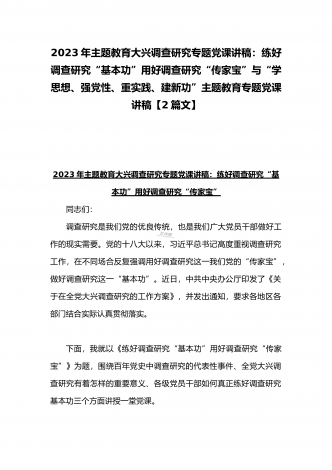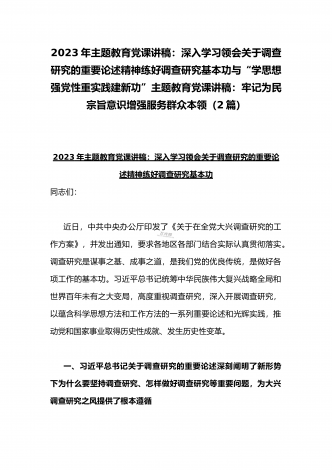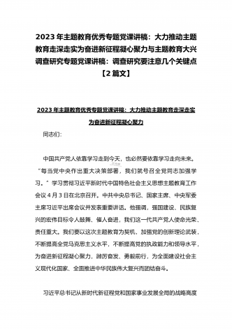 2023年主题教育大兴调查研究专题党课讲稿:调查研究要注意几个关键点与纪检监察干部队伍教育整顿主题党课讲稿:着力打造忠诚干净担当、敢于善于斗争的纪检监察铁军【2篇文】2023年主题教育大兴调查研究专题党课讲稿:调查研究要注意几个关键点与纪检监察干部队伍教育整顿主题党课讲稿:着力打造忠诚干净担当、敢于善于斗争的纪检监察铁军【2篇文】