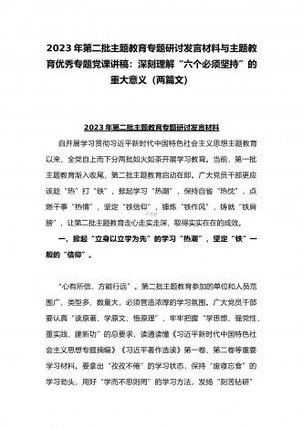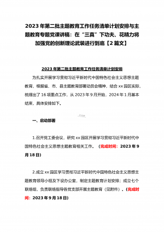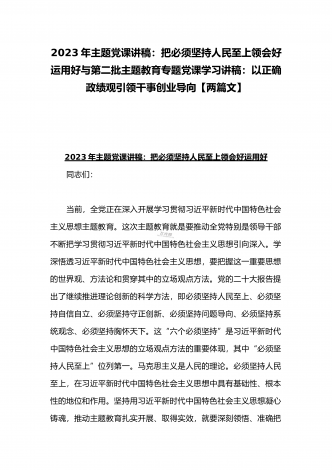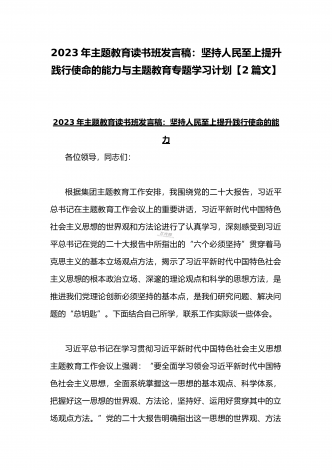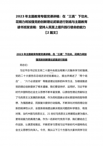 2023年主题教育专题党课讲稿:在“三真”下功夫、花精力将加强党的创新理论武装进行到底与主题教育读书班发言稿:坚持人民至上提升践行使命的能力【2篇文】