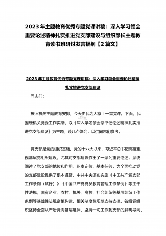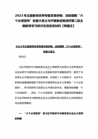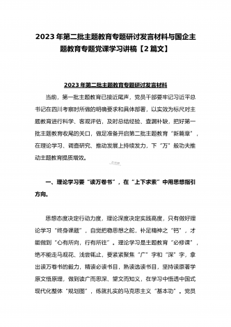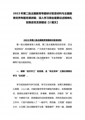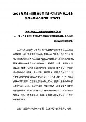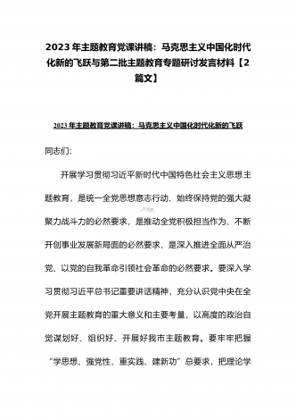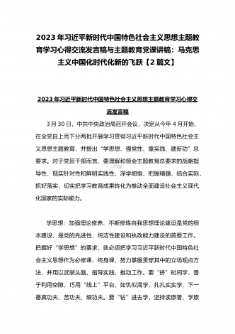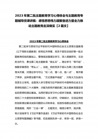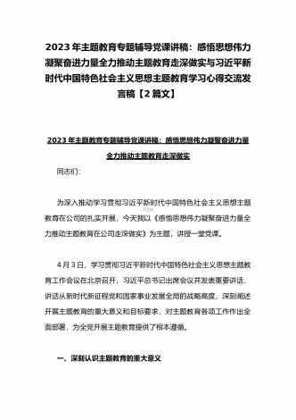 2023年主题教育专题辅导党课讲稿:感悟思想伟力凝聚奋进力量全力推动主题教育走深做实与习近平新时代中国特色社会主义思想主题教育学习心得交流发言稿【2篇文】