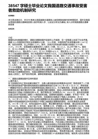 38547字硕士毕业论文我国道路交通事故受害者救助机制研究