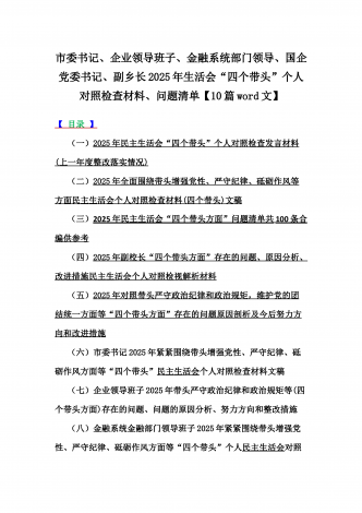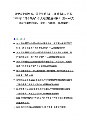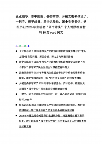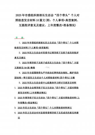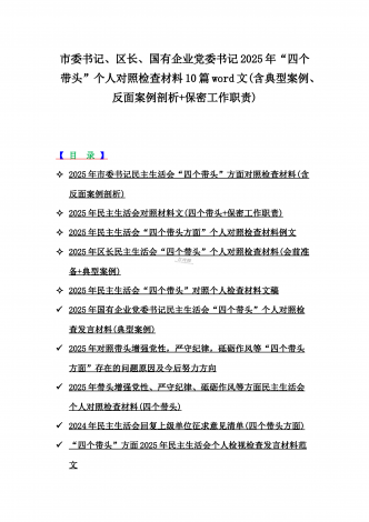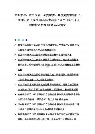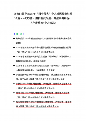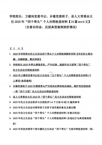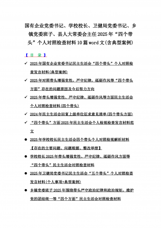 组织委员、医院院长、学校副校长、市总工会党组书记、乡党委副书记2025年“四个带头”个人对照检查材料10篇word文(附:反面案例、案例查找问题、典型案例解析、上年度整改+个人情况)