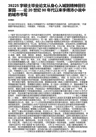 39225字硕士毕业论文从身心入城到精神回归家园——论20世纪90年代以来李傅沛小说中的城市书写