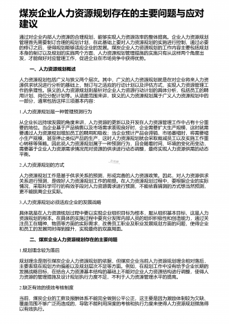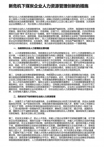 煤炭企业人力资源管理问题的解决措施