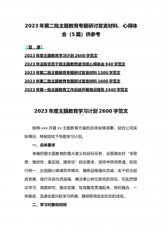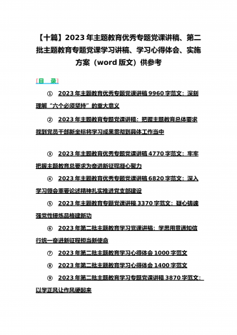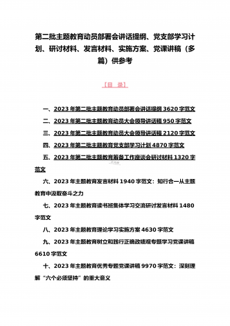 主题教育专题党课讲稿、心得体会、交流发言稿与第二批主题教育动员部署会讲话提纲、党支部学习计划、研讨材料(10篇word版文)供参考