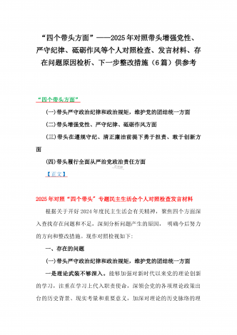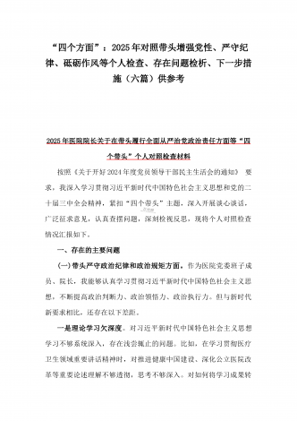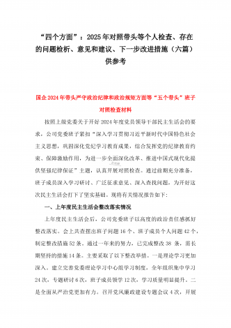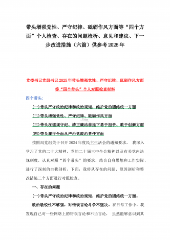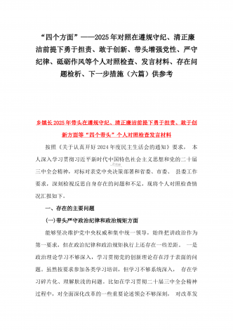 “四个方面”——2025年对照在遵规守纪、清正廉洁前提下勇于担责、敢于创新、带头增强党性、严守纪律、砥砺作风等个人对照检查、发言材料、存在问题检析、下一步措施(六篇)供参考