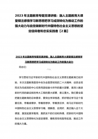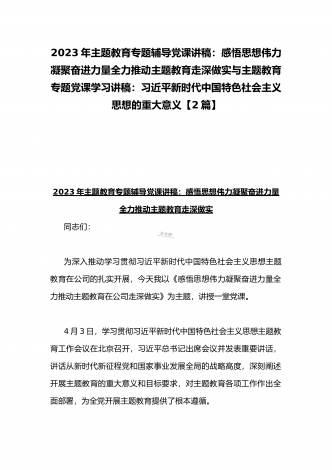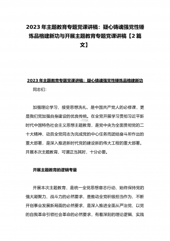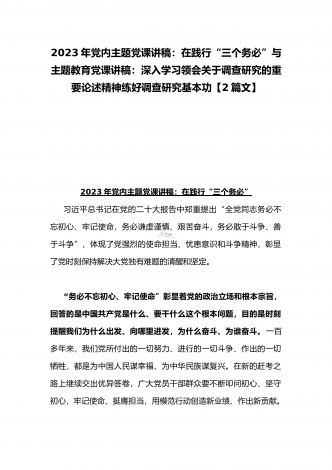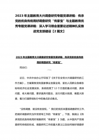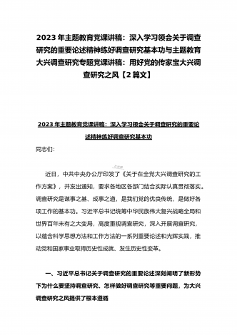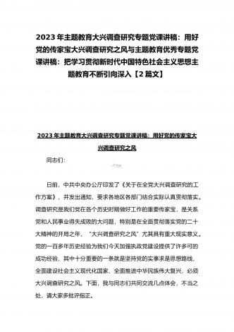 2023年主题教育大兴调查研究专题党课讲稿:用好党的传家宝大兴调查研究之风与主题教育优秀专题党课讲稿:把学习贯彻新时代中国特色社会主义思想主题教育不断引向深入【2篇文】