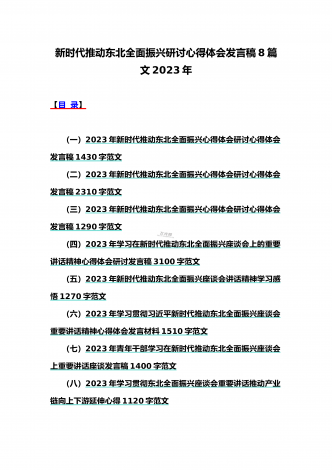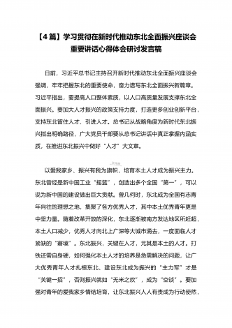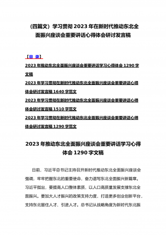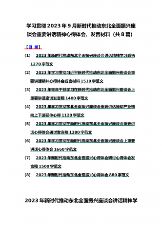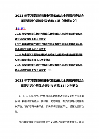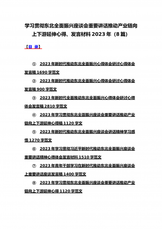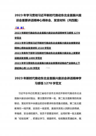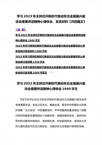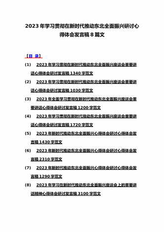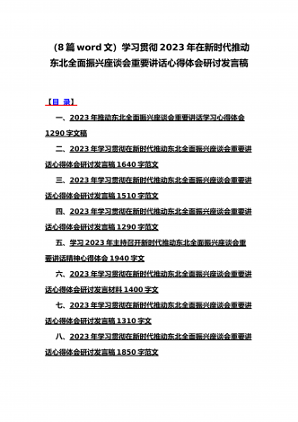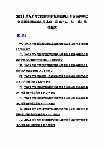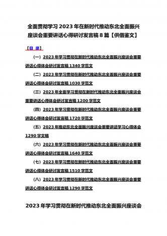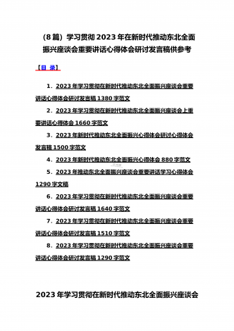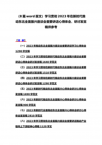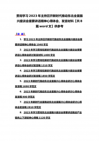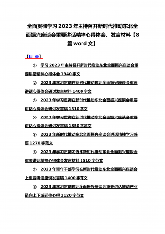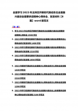 贯彻学习2023年主持召开新时代推动东北全面振兴座谈会重要讲话精神心得体会、发言材料【共8篇word文】供参考
