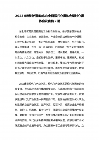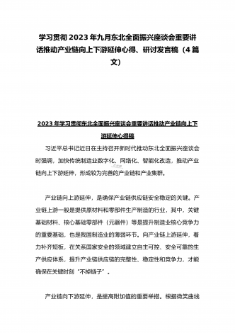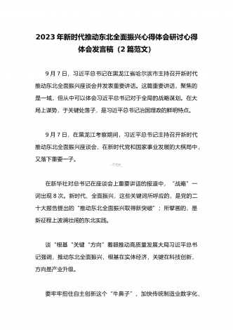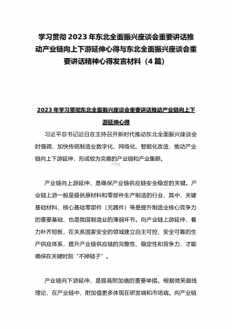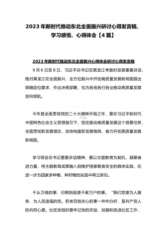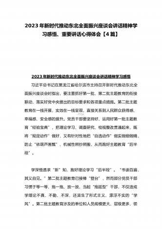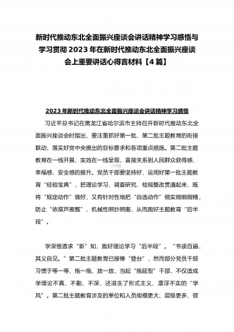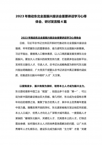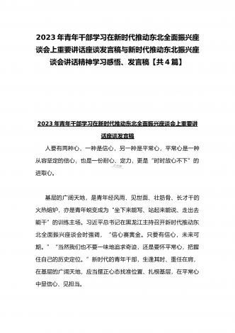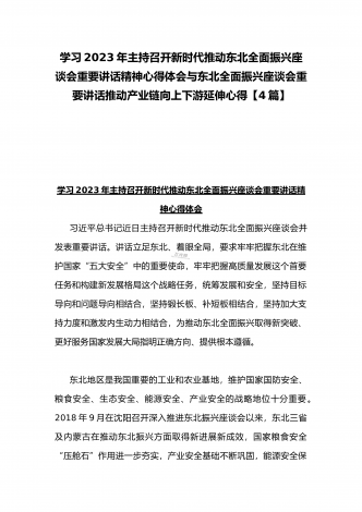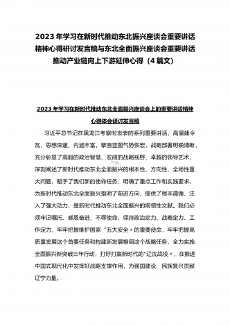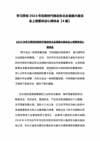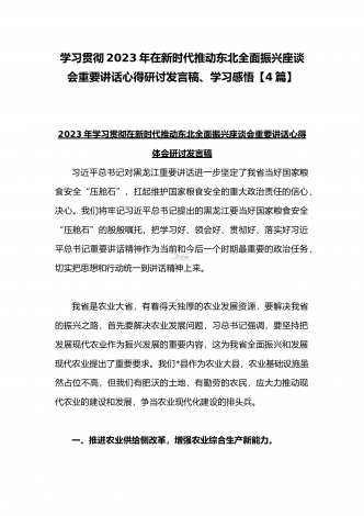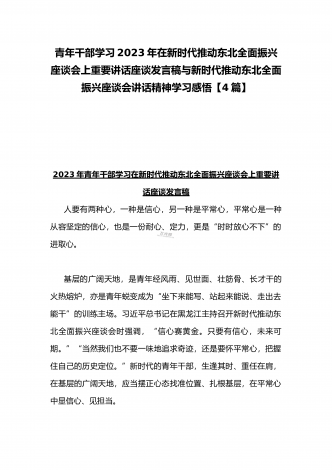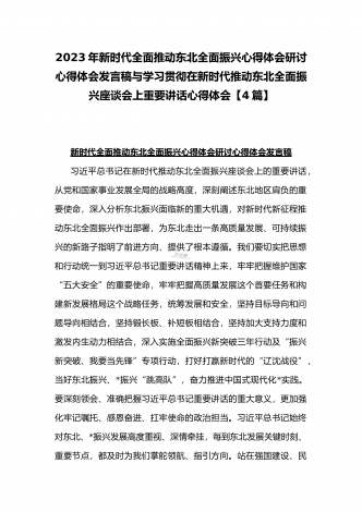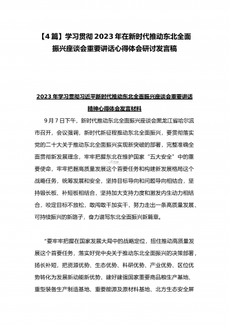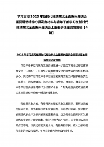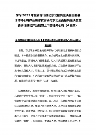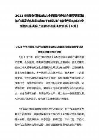 学习贯彻2023年新时代推动东北全面振兴座谈会重要讲话精神心得发言材料与青年干部学习在新时代推动东北全面振兴座谈会上重要讲话座谈发言稿【4篇】