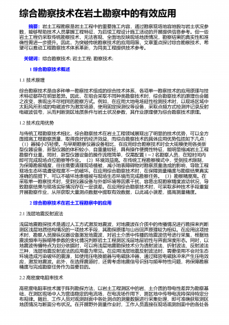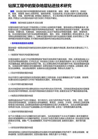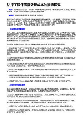 钻孔技术在钻探工程中的应用研究 摘要:当前我国钻探工程整体规模的扩大,对与之相关的技术依赖程度加深。在此背景下,为了增加钻探工程中的技术含量,为其作业计划高效实施提供技术支持,则需要考虑钻孔技术的应用,促使钻探工程在实践中可处于良好的发展状态。基于此,本文将对钻孔技术在钻探工程中的应用进行系统阐述。 关键词:钻孔技术,钻探工程,应用,规模,发展状态注重钻孔技术在钻探工程中的应用探讨,可使相应的作业计划实施更具科学性,提高钻孔效率,为钻探工程的科学建设提供保障。因此,需要给予钻孔技术在...