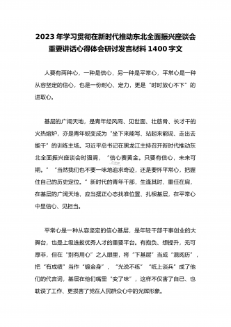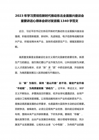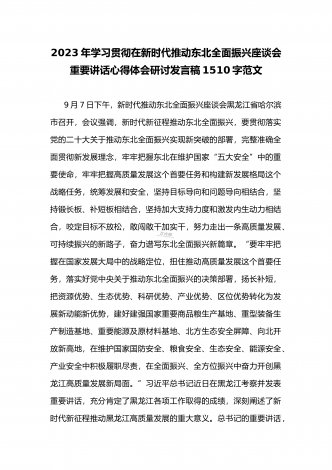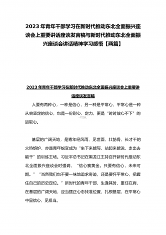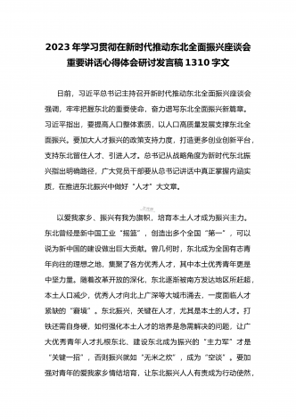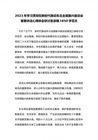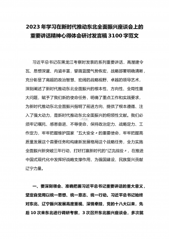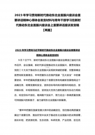 2023年学习贯彻新时代推动东北全面振兴座谈会重要讲话精神心得体会发言材料与青年干部学习在新时代推动东北全面振兴座谈会上重要讲话座谈发言稿【两篇】