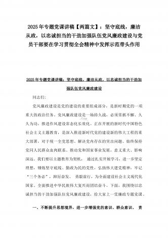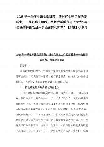 【两篇文】:2025年一季度专题党课讲稿:新时代党建工作的新要求——践行群众路线,密切联系群众与坚守底线,廉洁从政,以忠诚担当的干劲加强队伍党风廉政建设