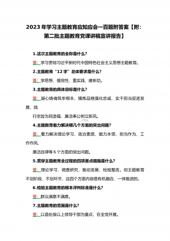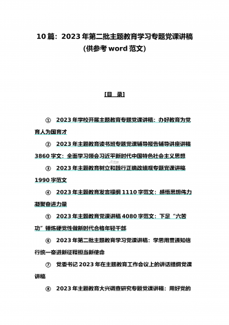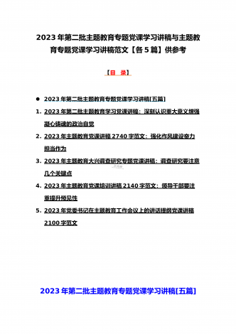2023年主题教育专题党课学习讲稿&第二批主题教育专题党课学习讲稿【各5篇】word范文供参考