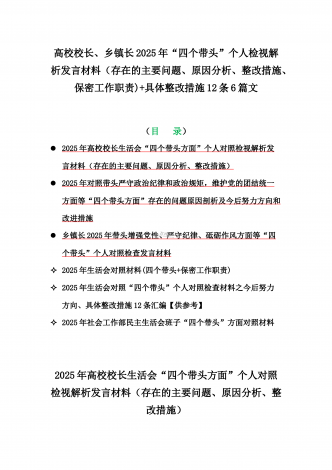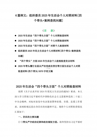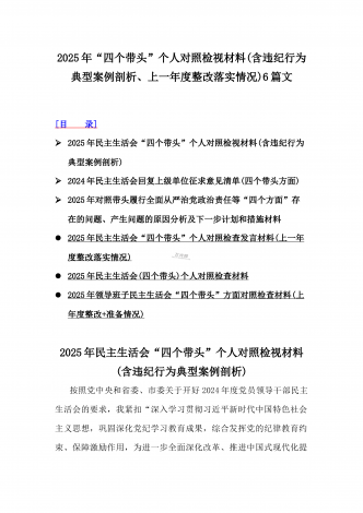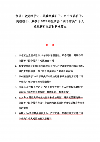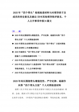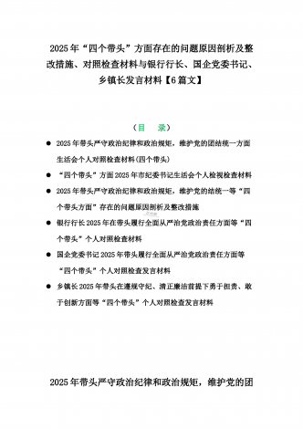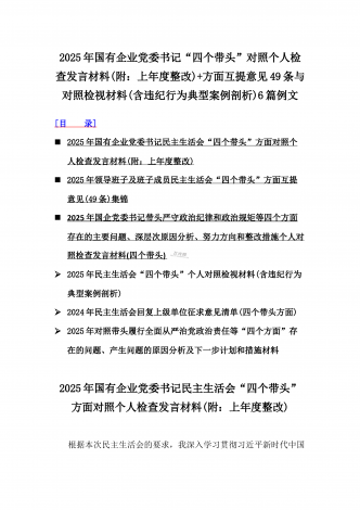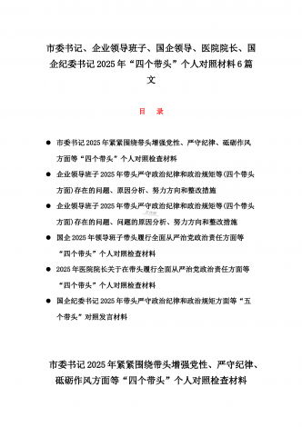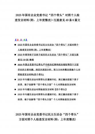 2025年国有企业党委书记“四个带头”对照个人检查发言材料(附:上年度整改)+方面互提意见49条与对照检视材料(含违纪行为典型案例剖析)6篇例文
