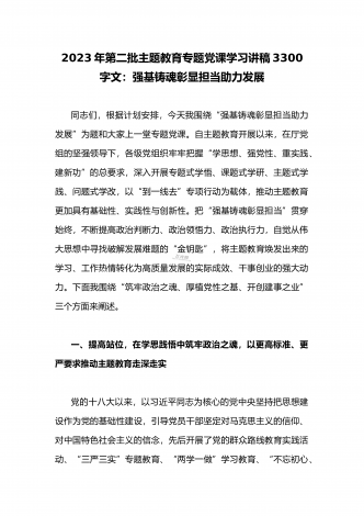 2023年主题教育发言提纲:以学增智以学正风争做主题教育的“先行者”与主题教育专题学习计划【两篇文】2023年主题教育发言提纲:以学增智以学正风争做主题教育的“先行者”下面,根据会议安排,我联系自身工作实际,围绕学习贯彻习近平新时代中国特色社会主义思想主题教育进行发言。不当之处,敬请大家批评指正。一是要补足“精神之钙”。“火车跑得快不快,全靠车头带”党员干部是一面旗帜,一言一行都代表着党的形象,要想行有度、步有方,就必须要学好党的创新理论,真正以扎实的理论根基做行为导向,确保“车头”速度快、不偏...