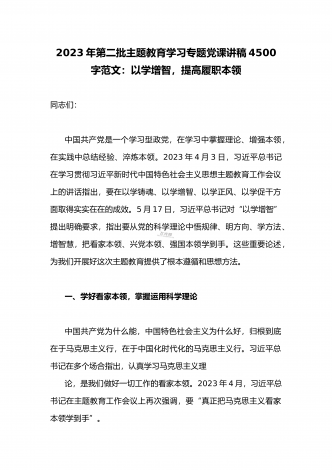 2023年主题教育发言提纲:以学增智以学正风争做主题教育的“先行者”与主题教育专题学习计划【两篇文】