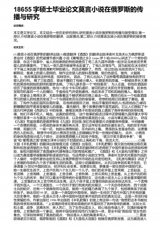 18655字硕士毕业论文莫言小说在俄罗斯的传播与研究