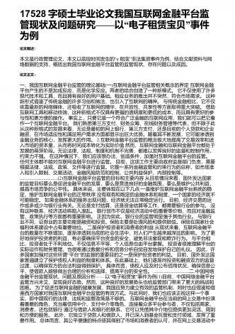 17528字硕士毕业论文我国互联网金融平台监管现状及问题研究——以“电子租赁宝贝”事件为例
