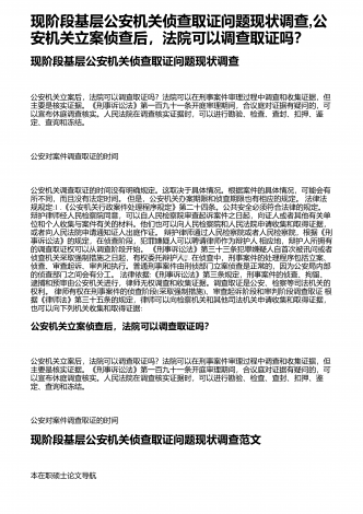 现阶段基层公安机关侦查取证问题现状调查,公安机关立案侦查后,法院可以调查取证吗?