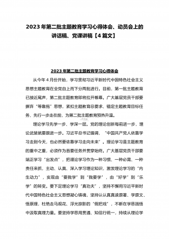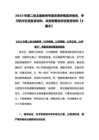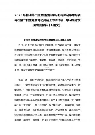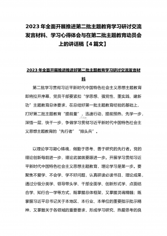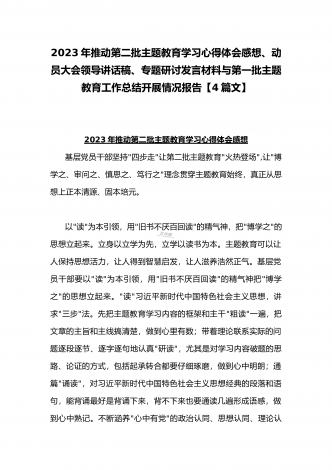2023年推动第二批主题教育学习心得体会感想、研讨交流发言材料、动员部署会讲话提纲与第一批主题教育工作总结开展情况报告(4份)供参考