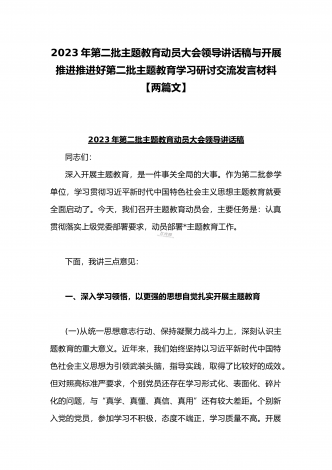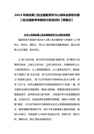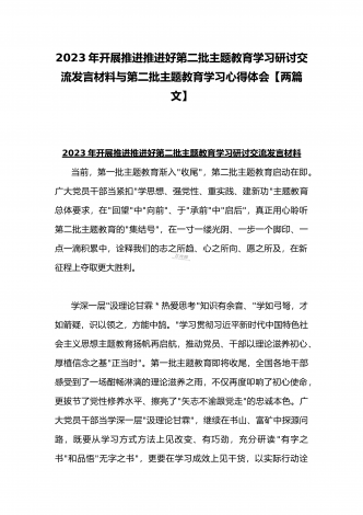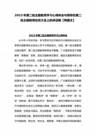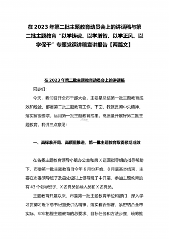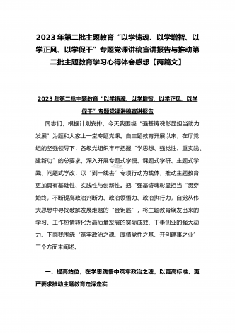 2023年第二批主题教育“以学铸魂、以学增智、以学正风、以学促干”专题党课讲稿宣讲报告与推动第二批主题教育学习心得体会感想【两篇文】