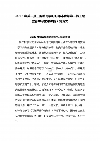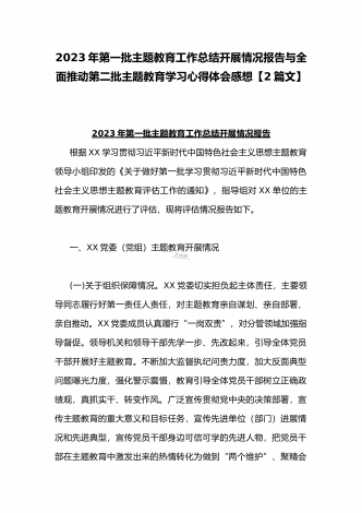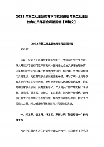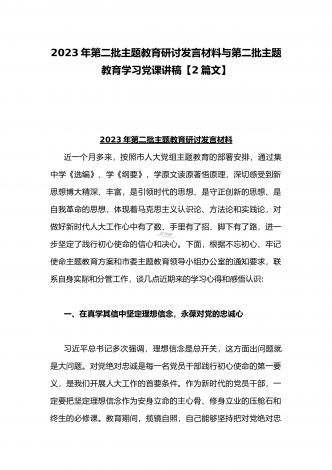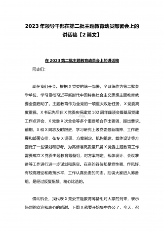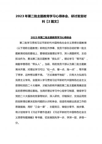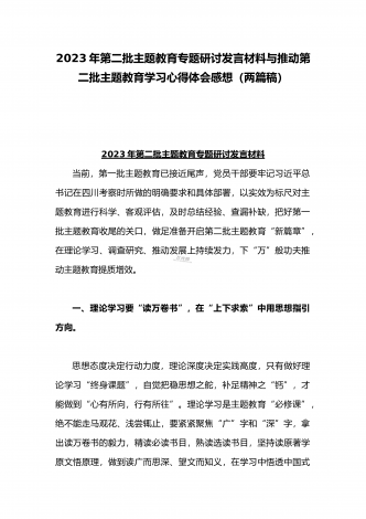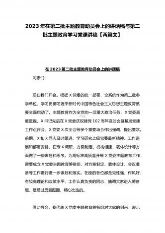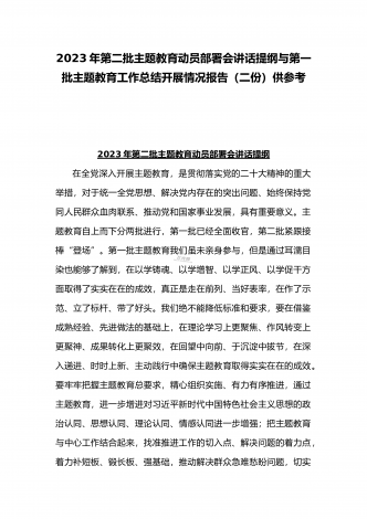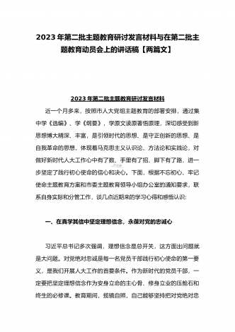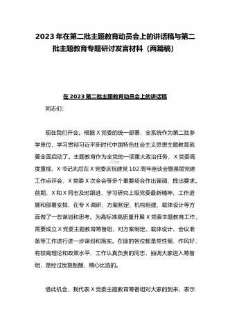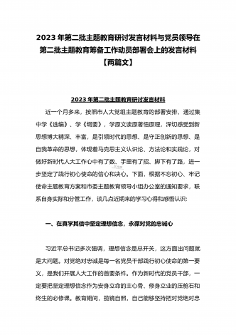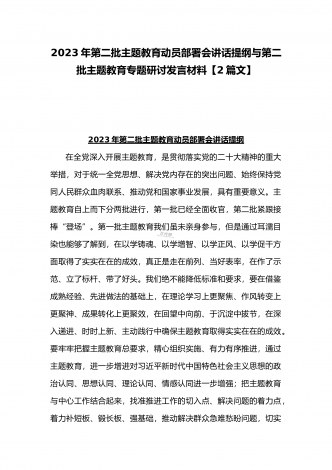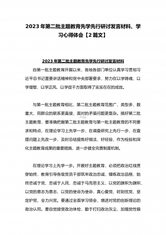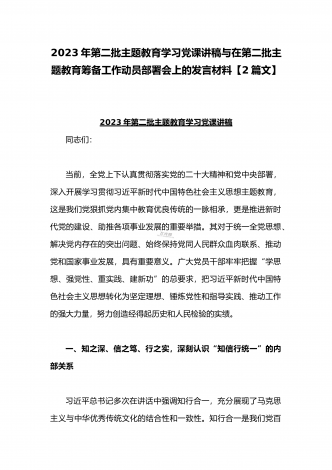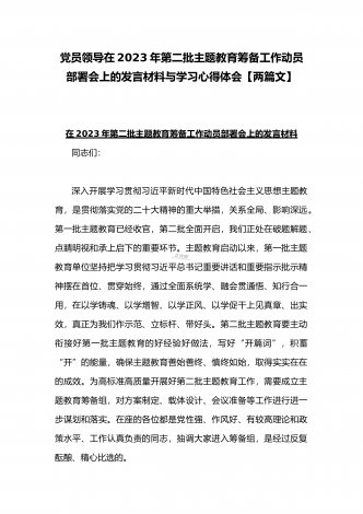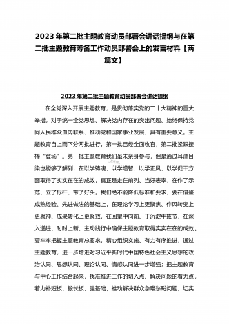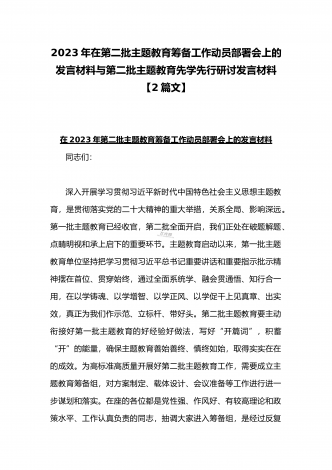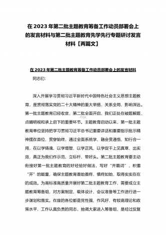 在2023年第二批主题教育筹备工作动员部署会上的发言材料与第二批主题教育先学先行专题研讨发言材料【两篇文】
