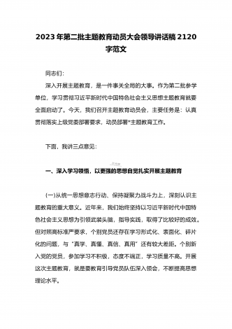 2023年第二批主题教育“以学铸魂、以学增智、以学正风、以学促干”专题党课讲稿宣讲报告3310字范文