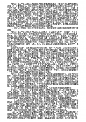 研讨发言:深入学习贯彻党的二十届三中全会精神 以金融高质量发展助力中国式现代化实践