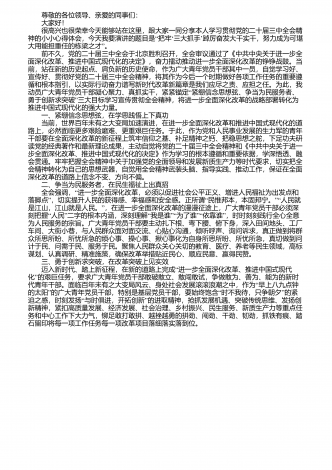 党的二十届三中全会是在以中国式现代化全面推进强国建设、民族复兴伟业的关键时期召开的一次十分重要的会议。习近平总书记在全会上所作的重要讲话以及全会审议通过的《中共中央关于进一步全面深化改革、推进中国式现代化的决定》(以下简称《决定》),对进一步全面深化改革、推进中国式现代化作出系统部署,彰显了以习近平同志为核心的党中央将改革进行到底的坚强决心和强烈使命担当,是对新时代新征程举什么旗、走什么路的再宣示,对以中国式现代化全面推进强国建设、民族复兴伟业具有重大而深远的意义。学习好贯彻好党的二十届三中...