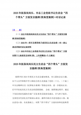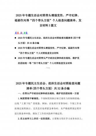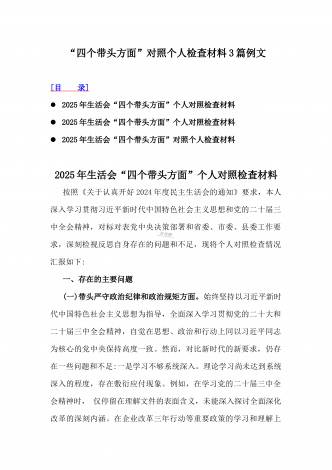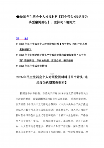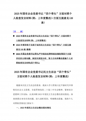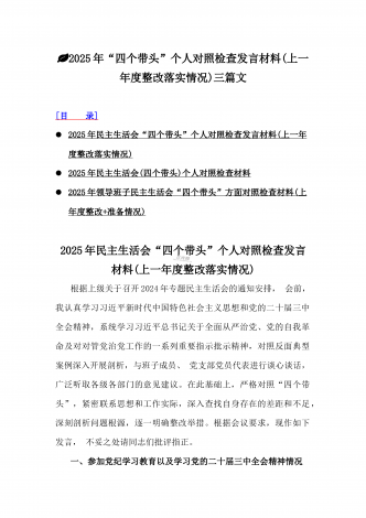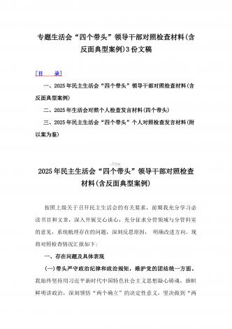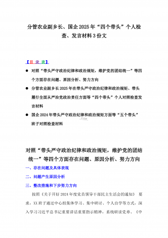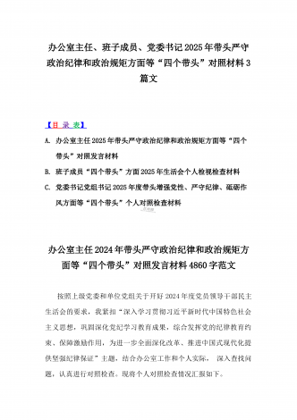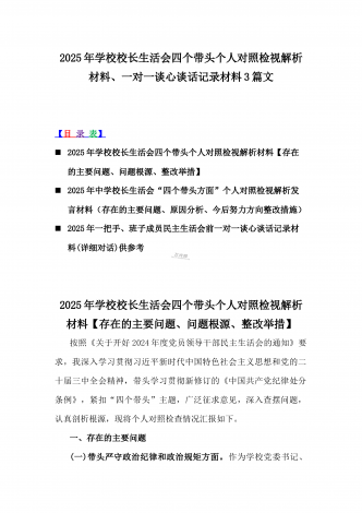 2025年学校副校长、市委书记生活会“四个带头”方面对照个人检视发言材料(附:典型案例解析)+问题的原因分析(12条)【目录表】2025年学校副校长关于民主生活会“四个带头”方面对照个人检视发言材料(附:典型案例解析)2025年市委书记民主生活会“四个带头”方面对照检查材料(含反面案例剖析)2025年生活会对照“四个带头”个人对照检查材料之存在问题的原因分析(12条)合编2025年学校副校长关于民主生活会“四个带头”方面对照个人检视发言材料(附:典型案例解析)按照市委关于开好2024年度党...