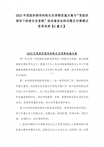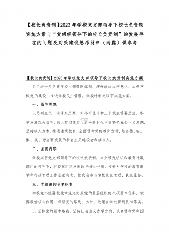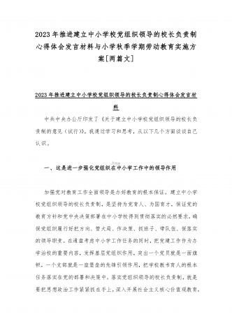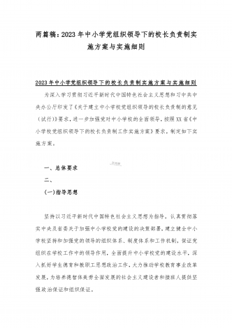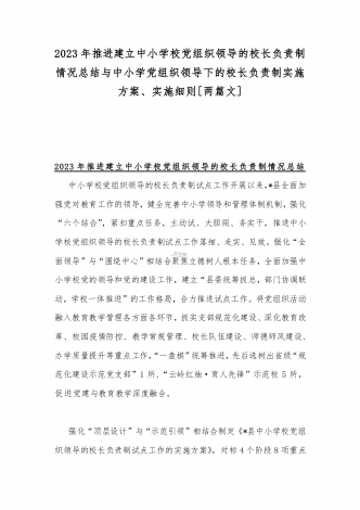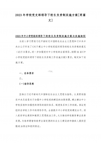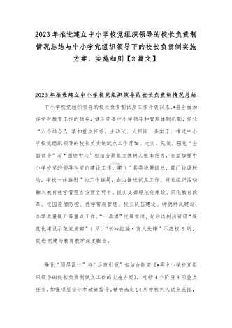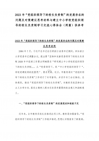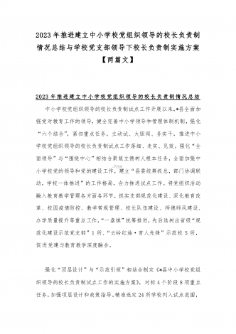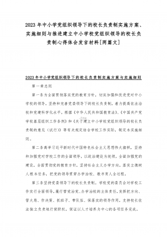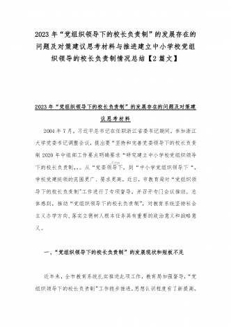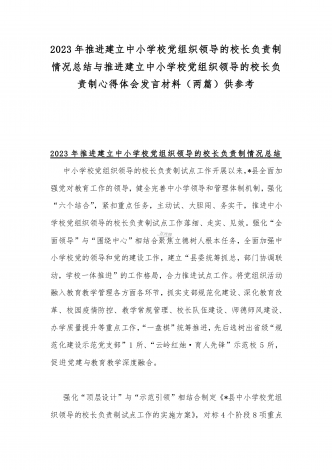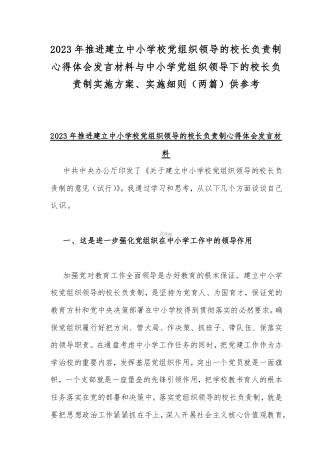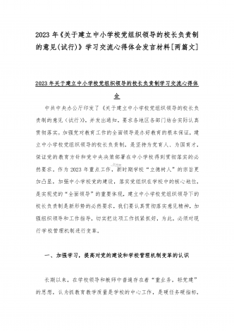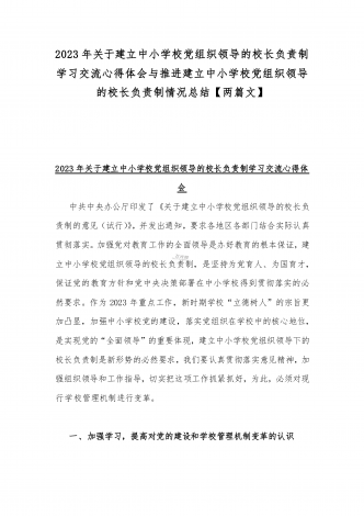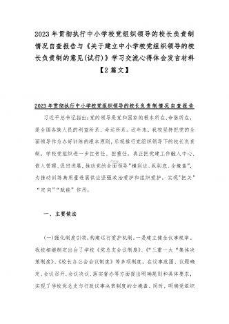 2023年贯彻执行中小学校党组织领导的校长负责制情况自查报告与《关于建立中小学校党组织领导的校长负责制的意见(试行)》学习交流心得体会发言材料【2篇文】
