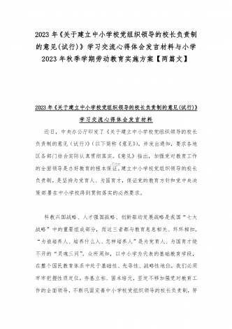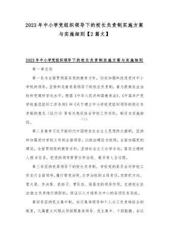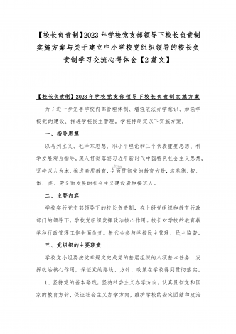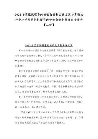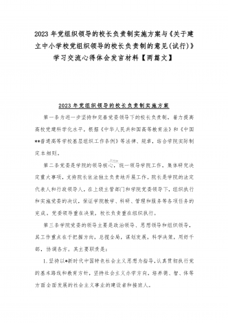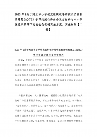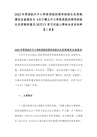 2023年贯彻执行中小学校党组织领导的校长负责制情况自查报告与《关于建立中小学校党组织领导的校长负责制的意见(试行)》学习交流心得体会发言材料【二份】