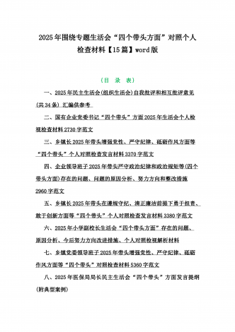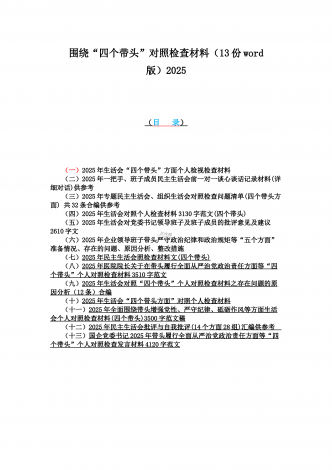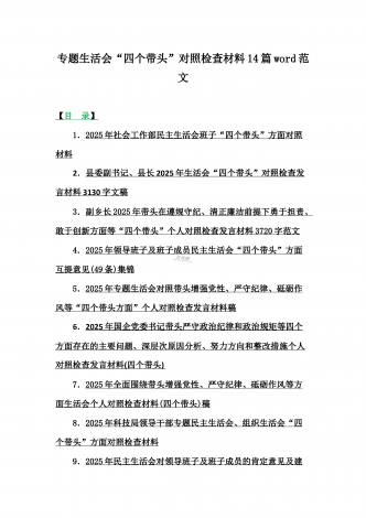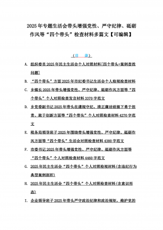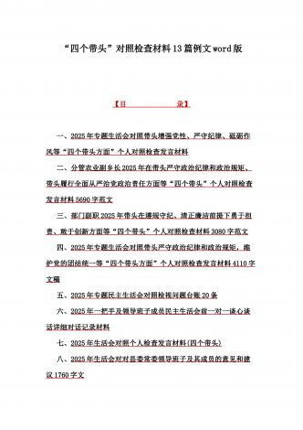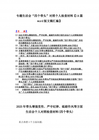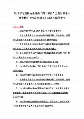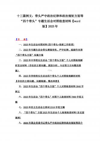 2025年围绕专题生活会带头严守政治纪律和政治规矩,维护党的团结统一等“四个带头”检查材料13篇word文【可参考编辑选用】