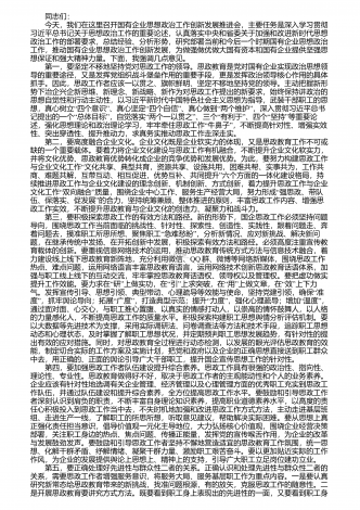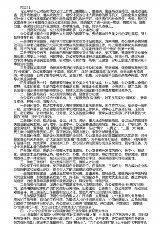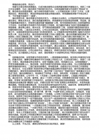 尊敬的各位领导,同志们: 党的二十届三中全会通过的《中共中央关于进一步全面深化改革、推进中国式现代化的决定》,着眼党所处的历史方位和肩负的使命任务,对当前和今后一个时期深化党的建设制度改革作出战略部署,充分体现了以习近平同志为核心的党中央坚持用改革精神和严的标准管党治党、以党的自我革命引领社会革命的高度自觉。x集团党委将深入学习领会,全面对标对表,将全会精神贯彻落实到集团党的建设全过程各方面,深入推进凝心铸魂、选贤任能、人才赋“”能、强基固本、先锋引领五大工程,以高水平党建引领保障集团公司...