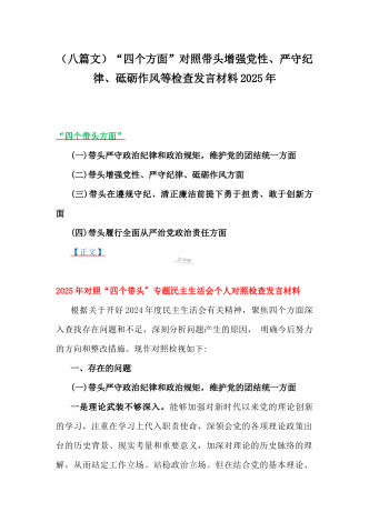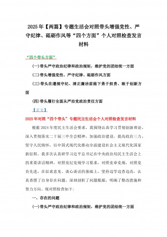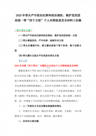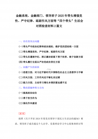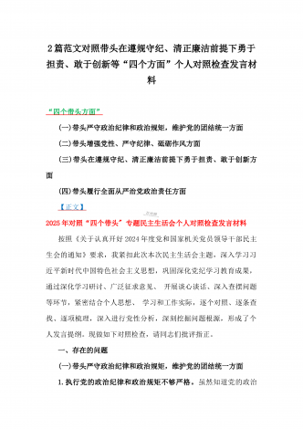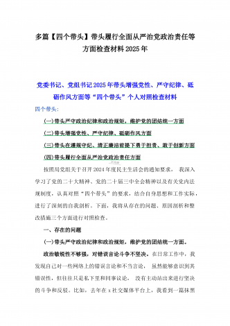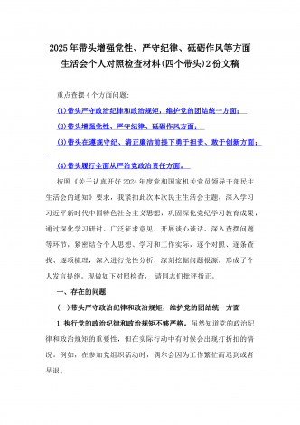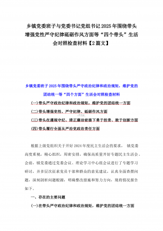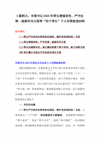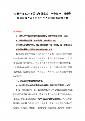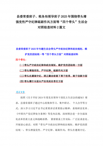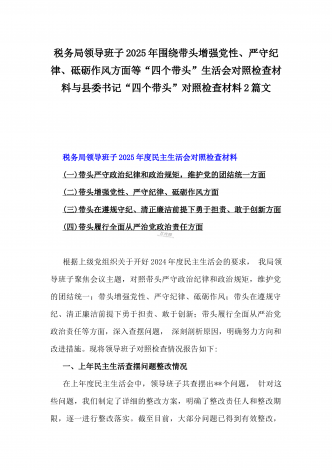税务局领导班子2025年围绕带头增强党性、严守纪律、砥砺作风方面等“四个带头”生活会对照检查材料与县委书记“四个带头”对照检查材料2篇文