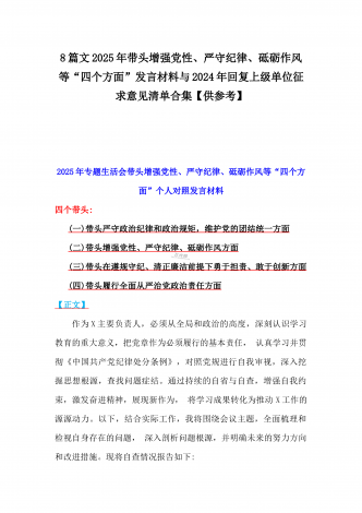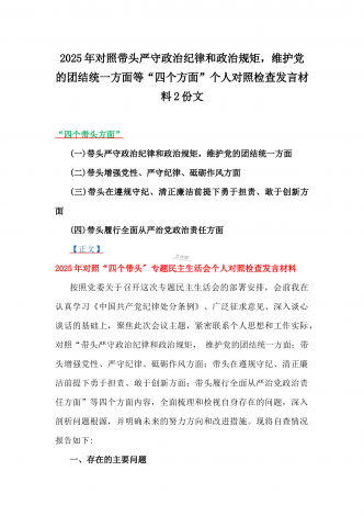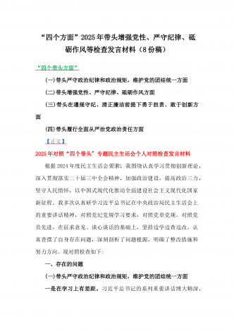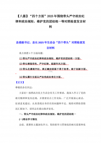 税务局领导班子2025年围绕带头增强党性、严守纪律、砥砺作风方面等“四个带头”生活会对照检查材料与县委书记“四个带头”对照检查材料2篇文税务局领导班子2025年度民主生活会对照检查材料(一)带头严守政治纪律和政治规矩,维护党的团结统一方面(二)带头增强党性、严守纪律、砥砺作风方面(三)带头在遵规守纪、清正廉洁前提下勇于担责、敢于创新方面(四)带头履行全面从严治党政治责任方面根据上级党组织关于开好2024年度民主生活会的要求,我局领导班子聚焦会议主题,对照带头严守政治纪律和政治规矩,维护党的团结统...