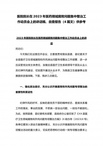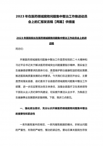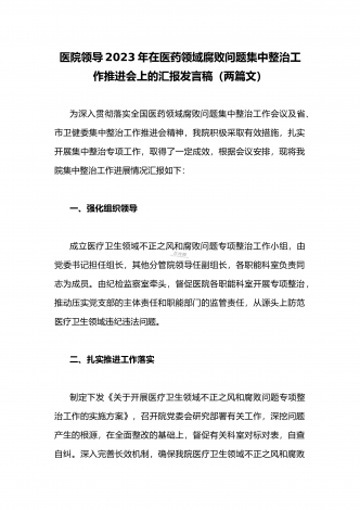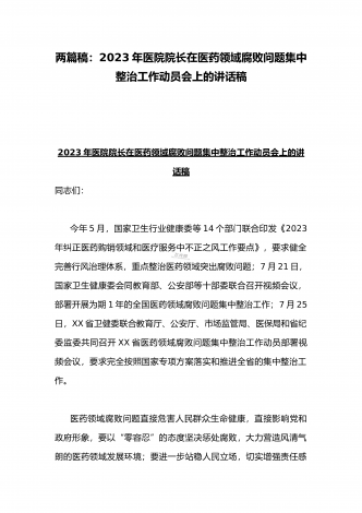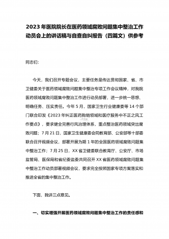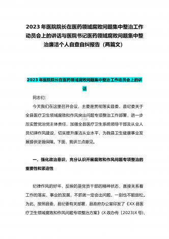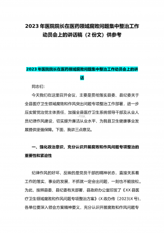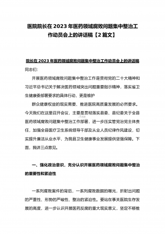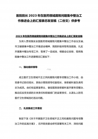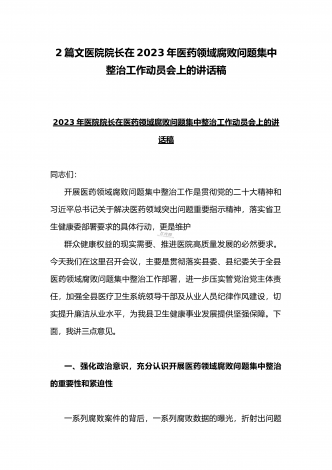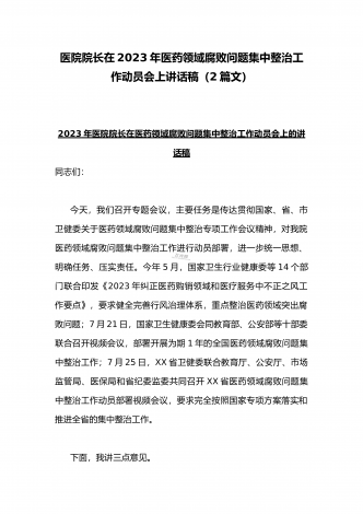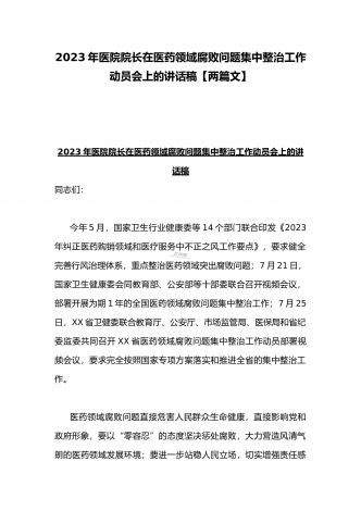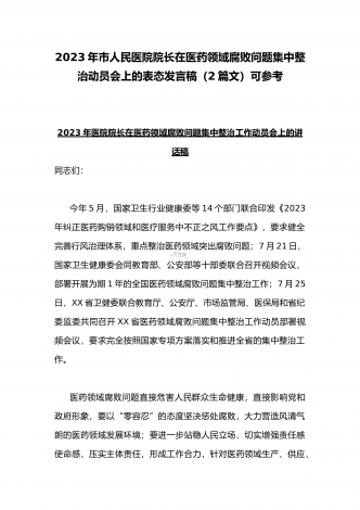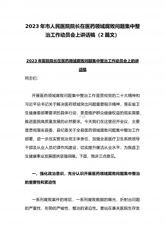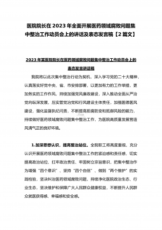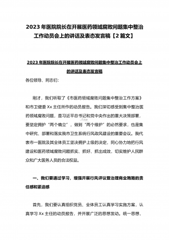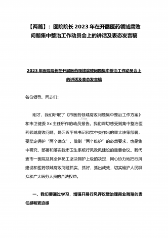2023年市人民医院院长在医药领域腐败问题集中整治动员会上表态发言与医院院长在医药领域腐败问题集中整治工作动员会讲话稿(2篇文)