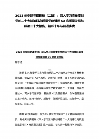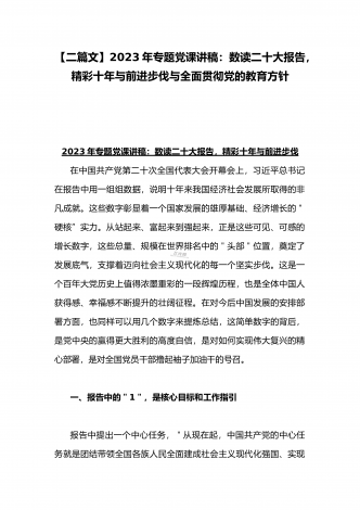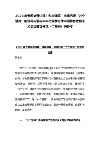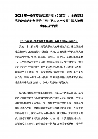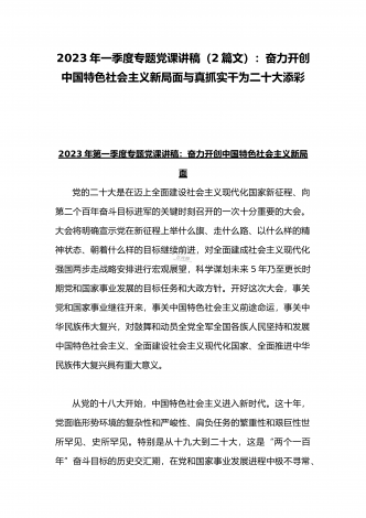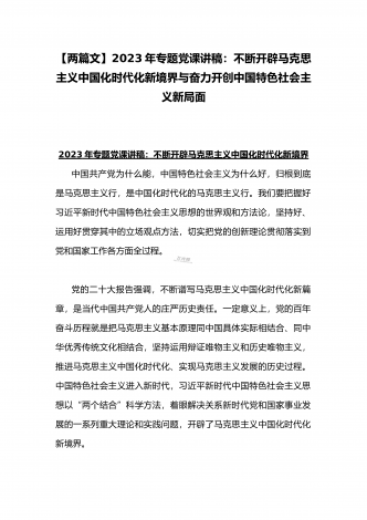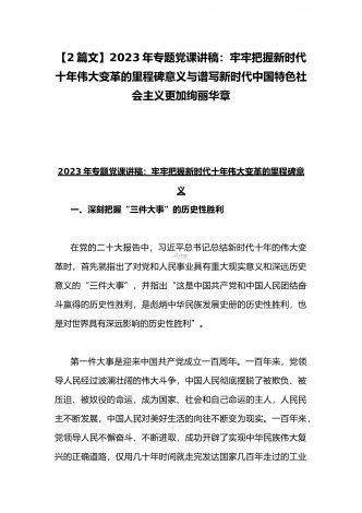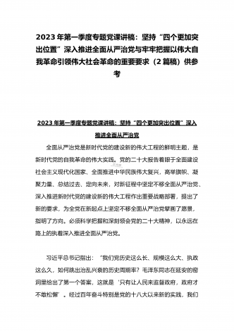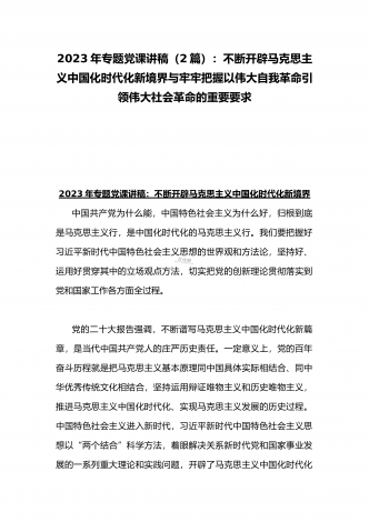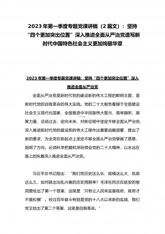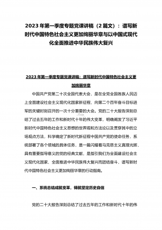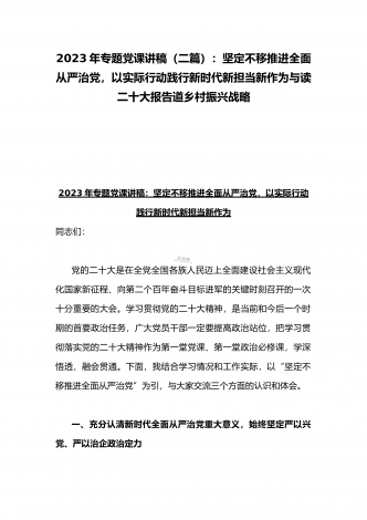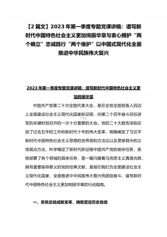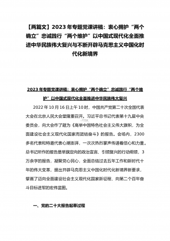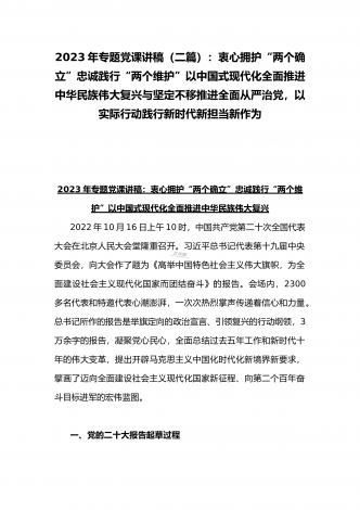 2023年专题党课讲稿(二篇):衷心拥护“两个确立”忠诚践行“两个维护”以中国式现代化全面推进中华民族伟大复兴与坚定不移推进全面从严治党,以实际行动践行新时代新担当新作为