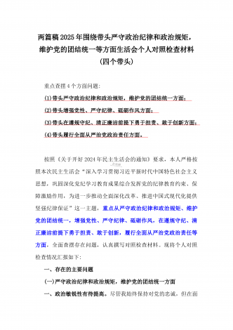 2024年民主生活会回复上级单位征求意见清单(四个带头方面)与带头在遵规守纪、清正廉洁前提下勇于担责、敢于创新等方面生活会个人对照检查材料2份(四个带头)2024年民主生活会回复上级单位征求意见清单(四个带头方面)XXX单位:收到贵单位关于征求(*2024年度民主生活会意见的函,我单位高度重视,通过谈心谈话、书面征集等形式,结合工作实际,广泛深入征求了对(*)党委班子和班子成员的意见建议。目前,已从从不同侧面和角度提出了意见建议。共整理汇总**条。(ps:各单位一般反馈的是表格,请从下方选择几条...