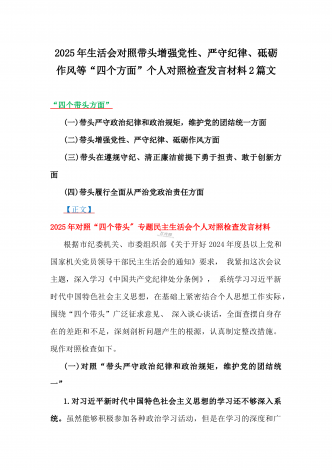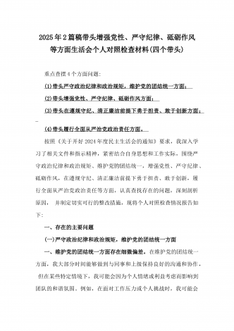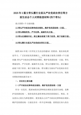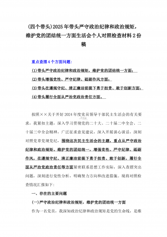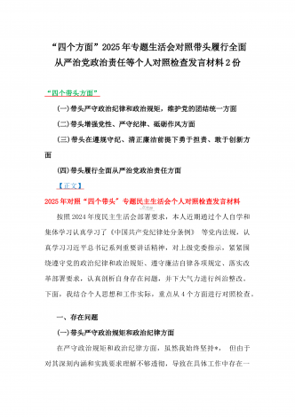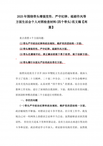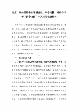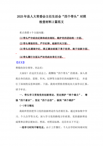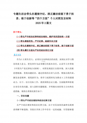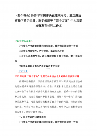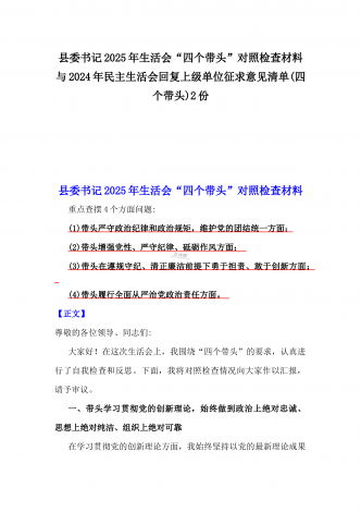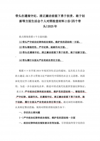 2024年民主生活会回复上级单位征求意见清单(四个带头方面)与带头在遵规守纪、清正廉洁前提下勇于担责、敢于创新等方面生活会个人对照检查材料2份(四个带头)