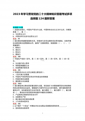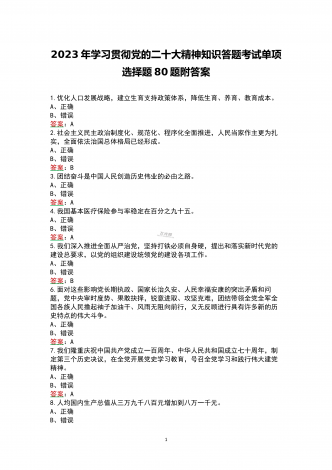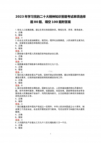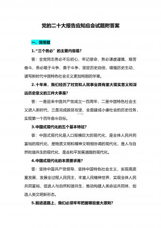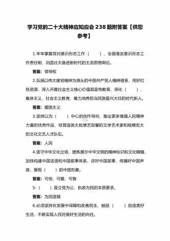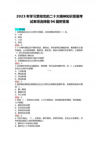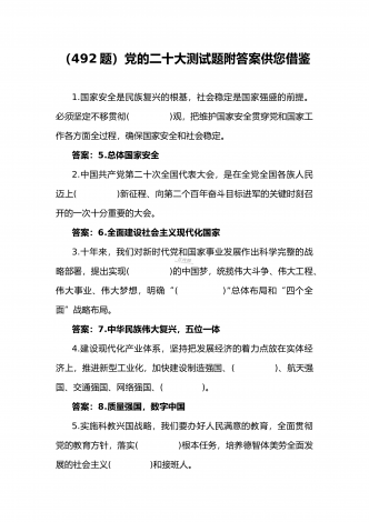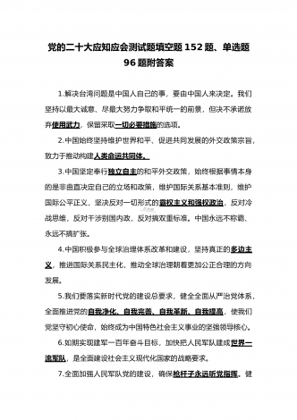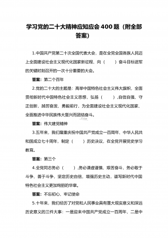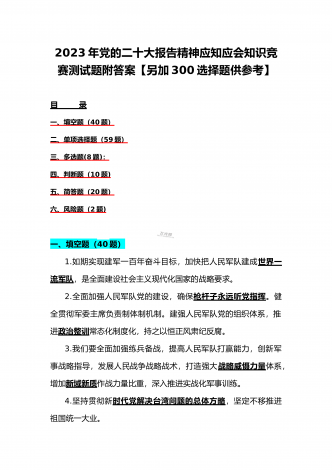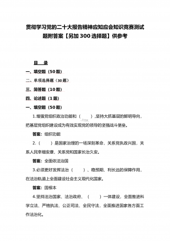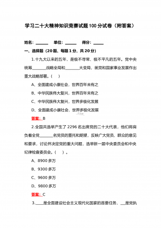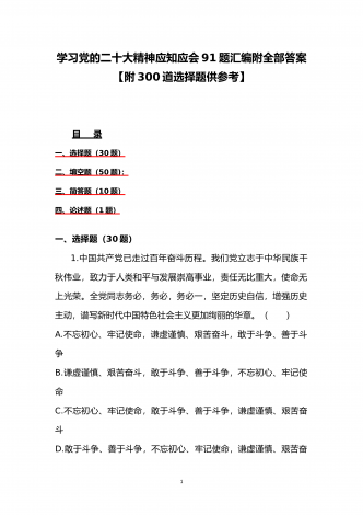 学习党的二十大报告精神应知应会知识竞赛测试题100分附答案(后附:300选择题)