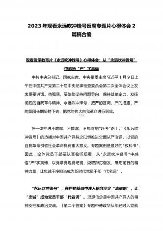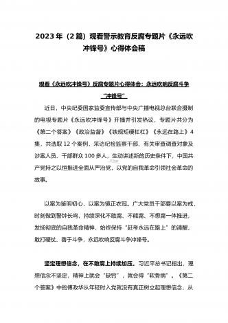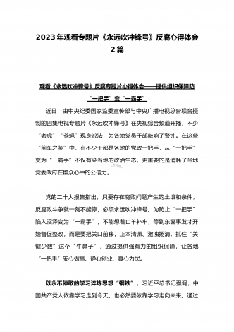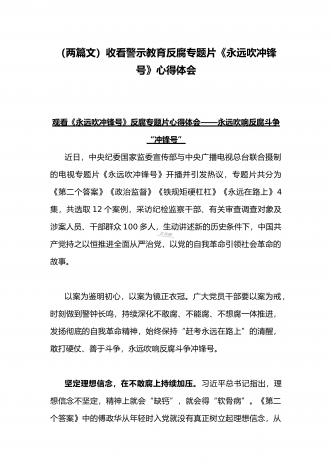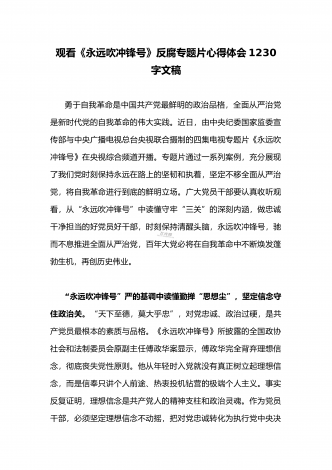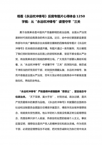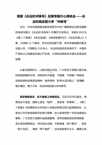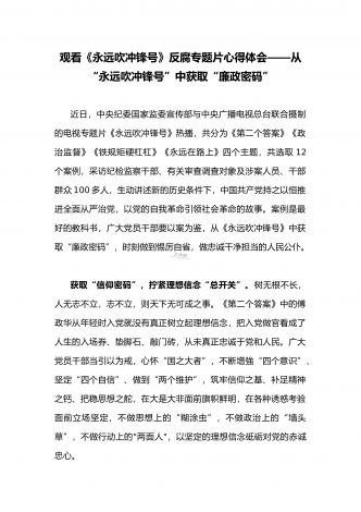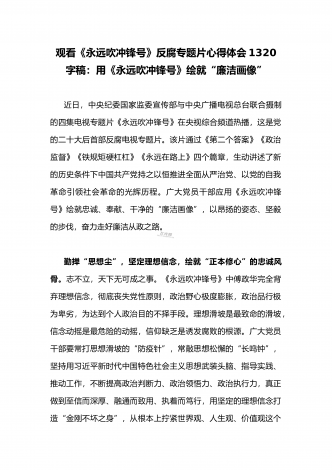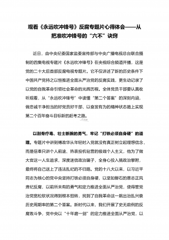 观看《永远吹冲锋号》反腐专题片心得体会1320字稿:用《永远吹冲锋号》绘就“廉洁画像”