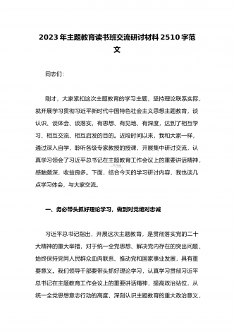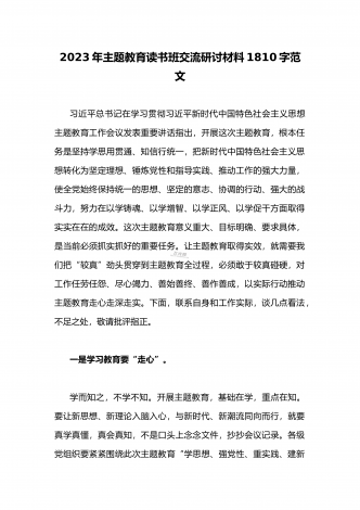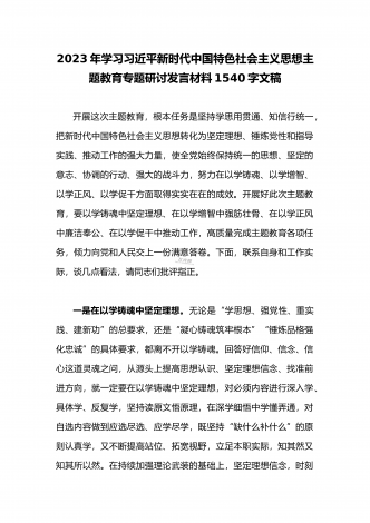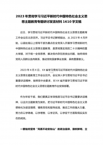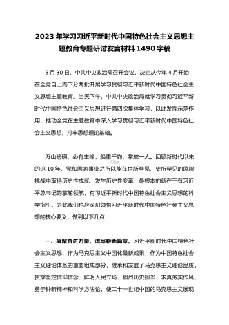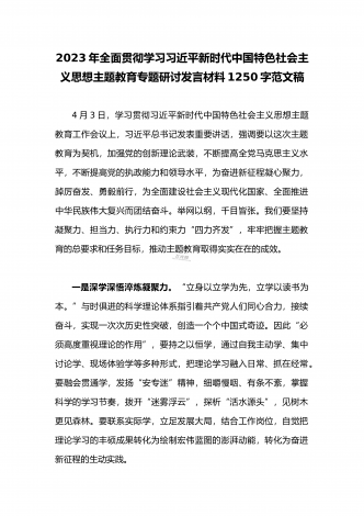 2023年全面贯彻学习习近平新时代中国特色社会主义思想主题教育专题研讨发言材料1840字范文稿