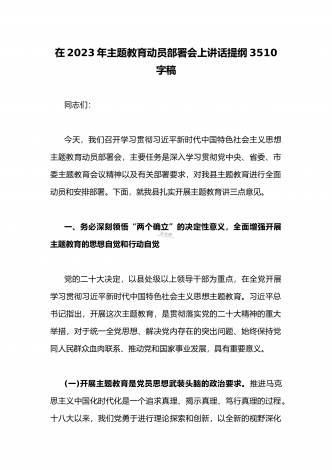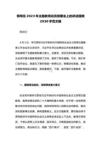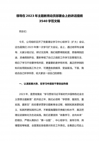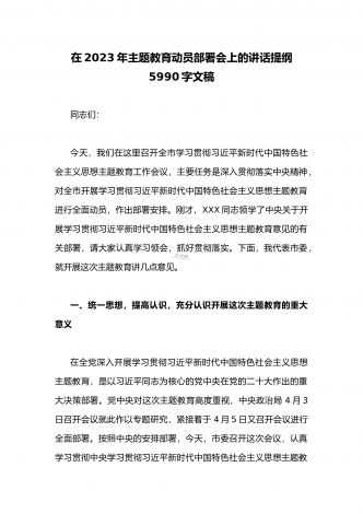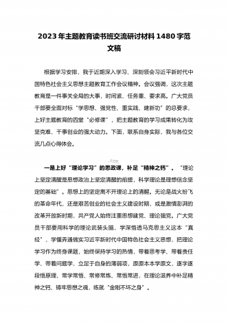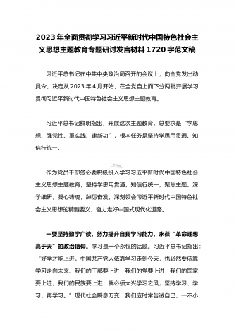2023年全面贯彻学习习近平新时代中国特色社会主义思想主题教育专题研讨发言材料1840字范文稿学习贯彻习近平新时代中国特色社会主义思想主题教育工作会议召开。习近平总书记发表重要讲话指出,开展这次主题教育,根本任务是坚持学思用贯通、知信行统一,把新时代中国特色社会主义思想转化为坚定理想、锤炼党性和指导实践、推动工作的强大力量,使全党始终保持统一的思想、坚定的意志、协调的行动、强大的战斗力,努力在以学铸魂、以学增智、以学正风、以学促干方面取得实实在在的成效。这次主题教育意义重大、目标明确、要求具体,...