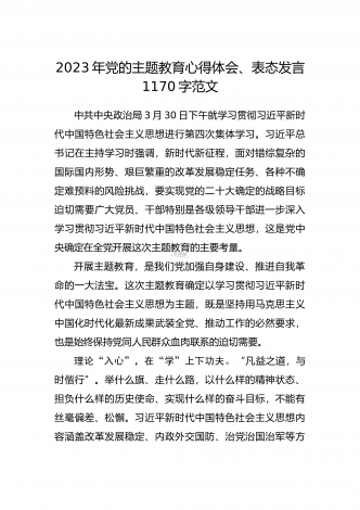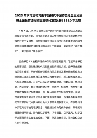 2023年全面贯彻学习习近平新时代中国特色社会主义思想主题教育读书班交流研讨发言材料1610字文稿按照党中央和省委关于主题教育部署要求,根据《省XX党组关于深入开展学习贯彻习近平新时代中国特色社会主义思想主题教育的工作方案》安排,4月XX日,XX学习贯彻习近平新时代中国特色社会主义思想主题教育读书班开班。党组书记XX在开班式上讲话强调,在全党深入开展学习贯彻习近平新时代中国特色社会主义思想主题教有,是党中央为全面贯彻党的二十大精神、动员全党同志为完成党的中心任务而团结奋斗所作的重大部署,是深入推...