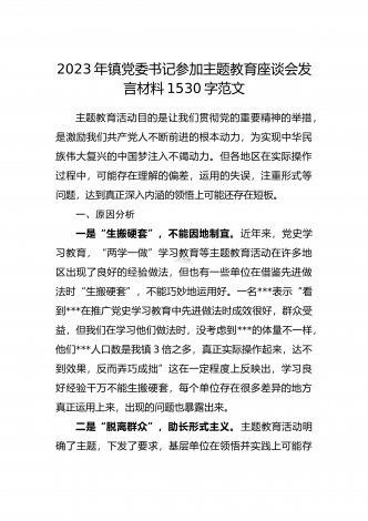 2023年全面贯彻学习习近平新时代中国特色社会主义思想主题教育读书班交流研讨发言材料1610字文稿