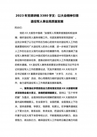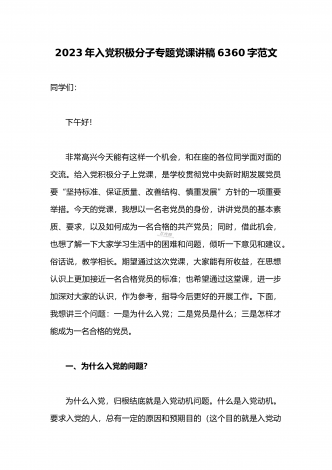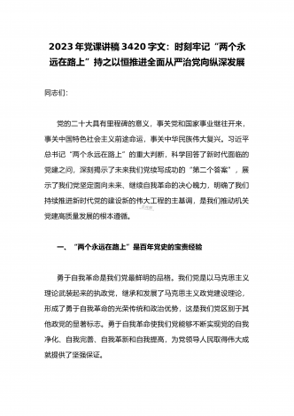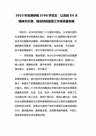 2023年全国两会专题党课讲稿5470字范文:牢牢把握高质量发展这个首要任务,为全面建设社会主义现代化国家开好局起好步同志们:高质量发展是“十四五”乃至更长时期我国经济社会发展的主题,关系我国社会主义现代化建设全局。全国两会上,高质量发展既是贯穿政府工作报告和“十四五”规划纲要草案的关键词,也是代表委员热议的焦点话题。习近平总书记在参加他所在的十四届全国人大一次会议江苏代表团审议时强调,高质量发展是全面建设社会主义现代化国家的首要任务。牢牢把握高质量发展这个首要任务,是以中国式现代化全面推进中华...