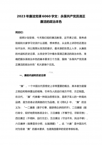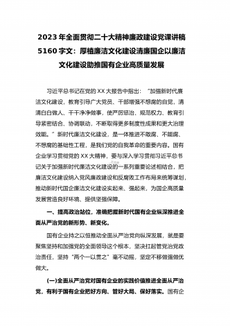 2023年全面贯彻二十大精神廉政建设党课讲稿5160字文:厚植廉洁文化建设清廉国企以廉洁文化建设助推国有企业高质量发展
