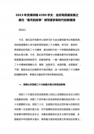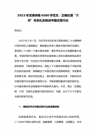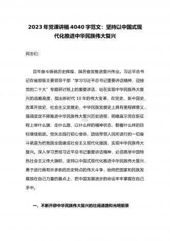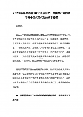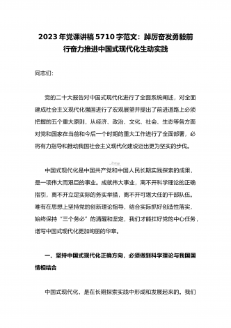 学习党的二十20大精神党员干部辅导微党课讲稿2740字文:不断谱写马克思主义中国化时代化新篇章